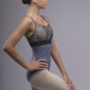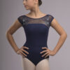 Descriere: Un body de balet sofisticat, care îmbină misterul nopții cu delicatețea florală. Partea superioară este realizată din tulle transparent, brodat cu motive florale albastre fine, ce oferă un contrast elegant pe fondul nude. Partea inferioară, într-o nuanță de albastru intens, creează o linie fluidă și rafinată, accentuată de bretelele subțiri duble, care adaugă un plus de grație și susținere.