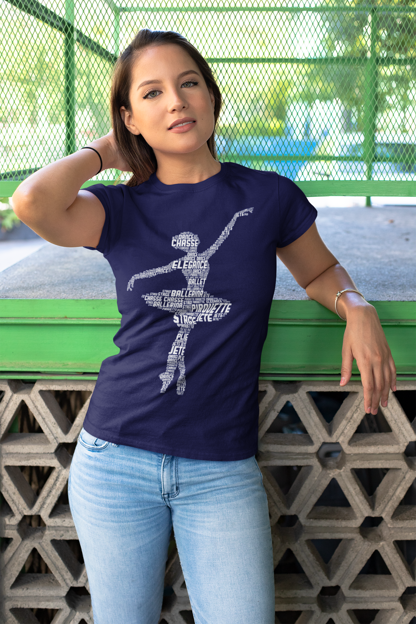Tricou pentru balerine cu siluetă realizată din termeni de balet precum plié, jeté și pirouette. navy