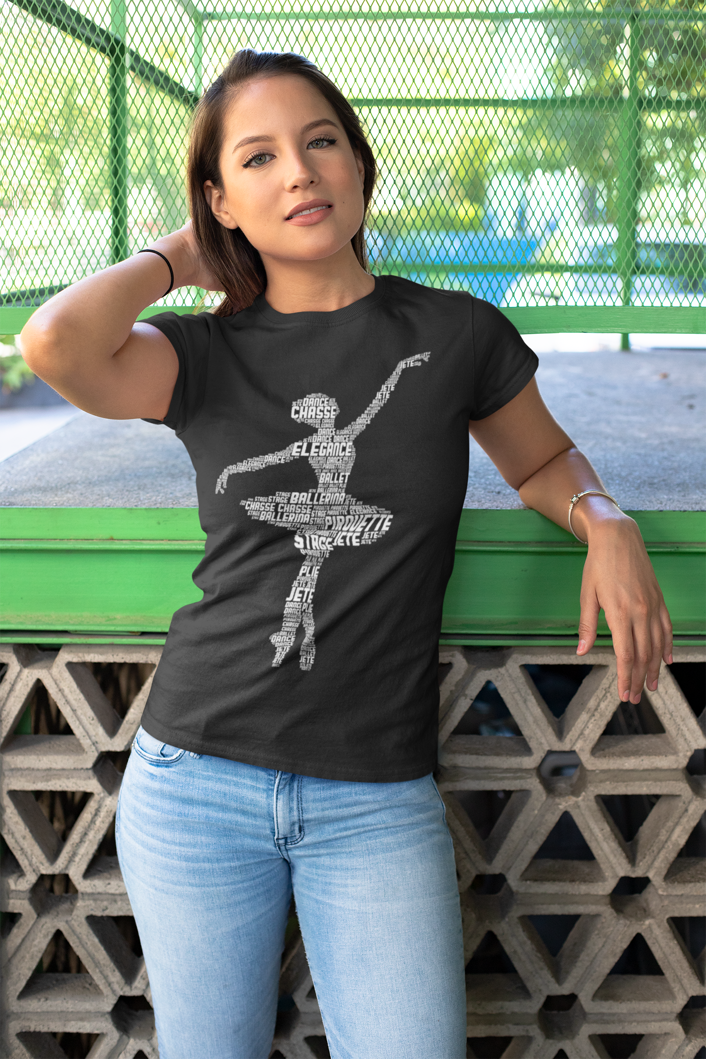 Tricou pentru balerine cu siluetă realizată din termeni de balet: plié, jeté, pirouette, élégance. Un design artistic și educativ în același timp.
