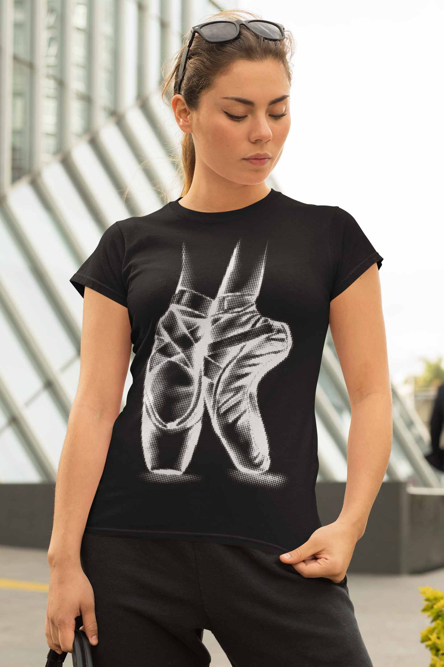 Tricoul cu design artistic monocrom pune în centrul atenției eleganța și forța din spatele fiecărui pas pe scenă. Ilustrația stilizată în alb pe fundal negru oferă un contrast puternic și un look modern, ușor urban.