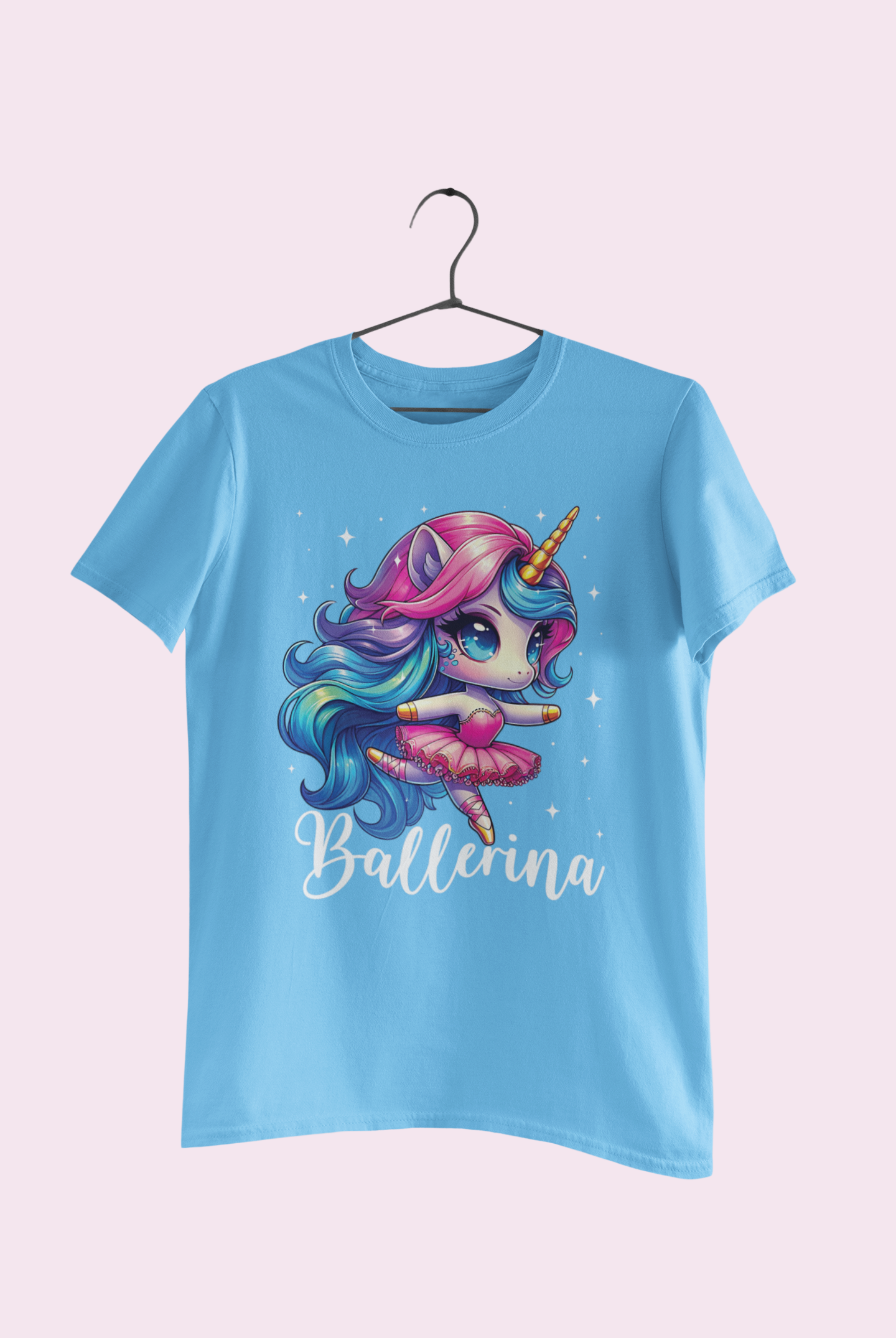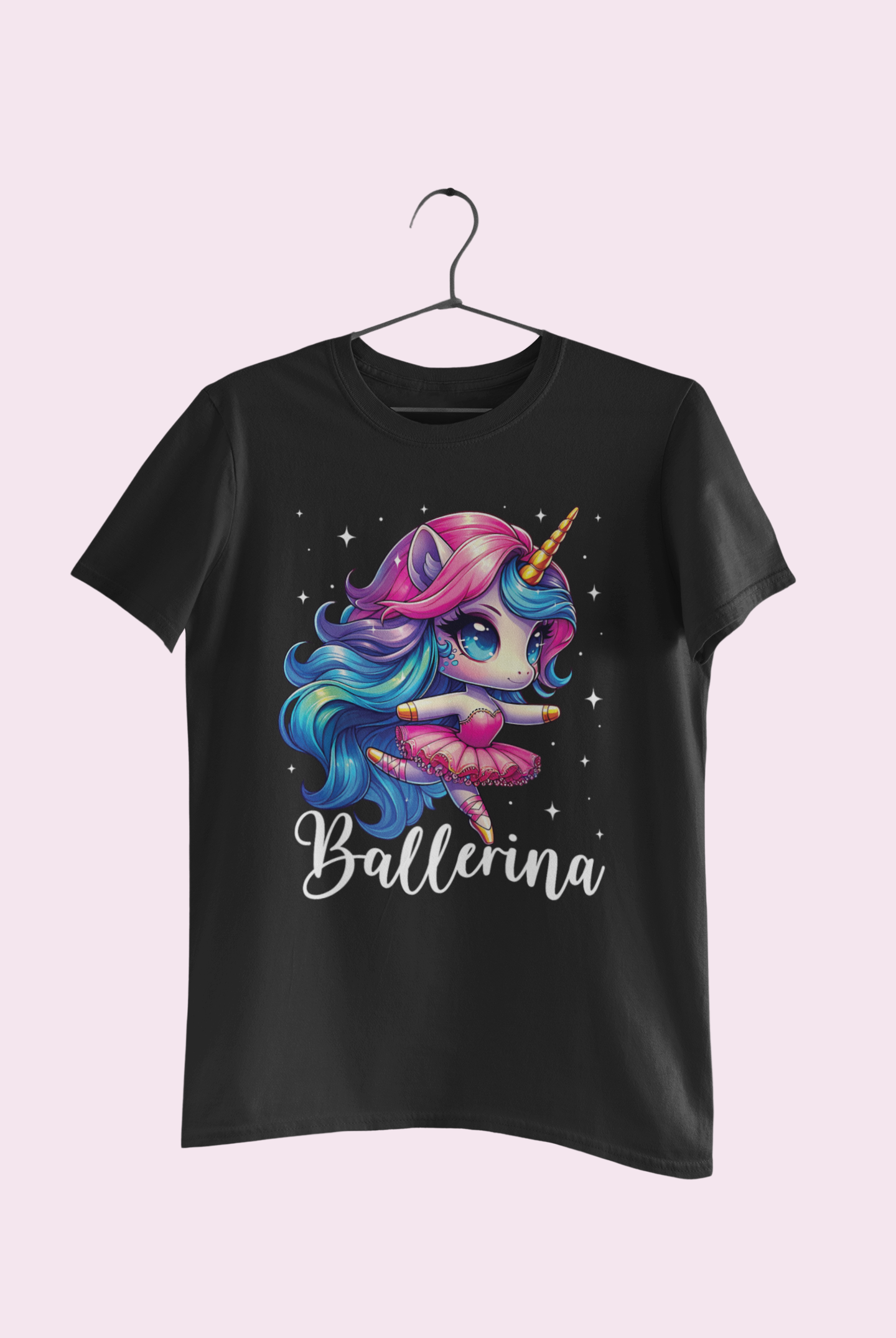 Un tricou care aduce împreună magia unicornilor și grația baletului, transformând fiecare zi într-o mică poveste.